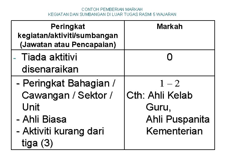 IiiSumbangan Luar Tugas Rasmi. Kegiatan Dan Sumbangan Di Luar Tugas Rasmi For more information and source see on this link. KEGIATAN DAN SUMBANGAN DI LUAR TUGAS RASMI Peringkat Antarabangsa Kebangsaan Negeri Daerah Jabatan Komuniti maksimum 10 markah.
