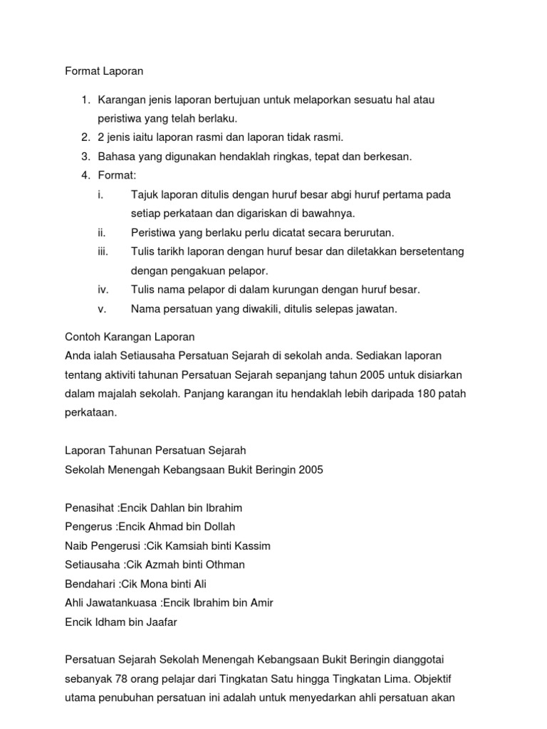 Dalam tempoh 2 minggu selepas pulang ke tanah air Within 2. Lazimnya karangan ini bertujuan untuk menceritakan perisitiwa atau perkara. 22032021 Contoh Format Laporan Rasmi - Laporan 3 Contoh soalan 4 Skema jawapan 4-5 Contoh esei 6-7 Format 2.
