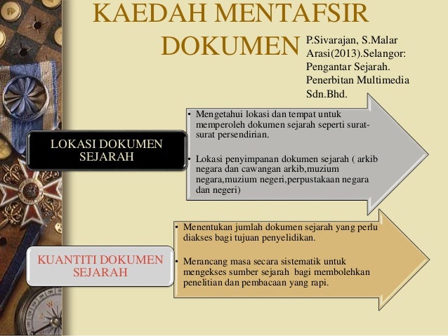 Muzium sejarah mencakup pengetahuan sejarah dan kaitannya dengan masa kini dan masa depan. Bersifat sulit dan rahsiaIa bergantung kepada keadaan semasa dan persekitaran negaraSesetengah dokumen sejarah yang dimiliki oleh pihak arkib tidak boleh diakses oleh ahli-ahli sejarah kerana kepentingan keselamatan negara dan kepentingan pihak. 12082015 Ciri-ciri lain yang perlu diberi perhatian oleh ahli sejarah dalam mengkaji sesuatu dokumen sejarah ialah.
